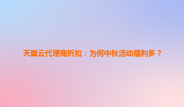 2025-06-04天翼云代理商折扣:中秋活动福利背后的三重优势 节日经济下的战略布局 每逢中秋佳节,天翼云代理商体系总会推出令人惊喜的折扣活动,这背后蕴含着深层次的商业逻辑。作为中国电信旗下的...