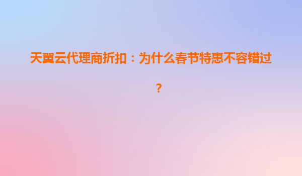 2025-06-03天翼云代理商折扣:为什么春节特惠不容错过? 引言:春节商机与数字化转型的完美契合 春节不仅是传统佳节,更是企业布局新年数字化战略的黄金窗口。天翼云作为中国电信旗下的云计算服务商,依托央企背景...