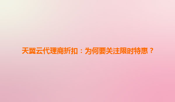 2025-06-02把握天翼云代理商限时特惠:开启智慧上云新篇章 限时特惠:不容错过的黄金机遇 在数字化转型浪潮中,天翼云代理商推出的限时特惠活动是企业降本增效的战略性契机。不同于常规折扣,限时...