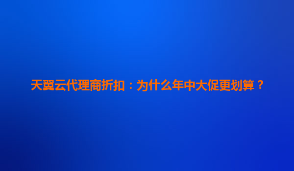 2025-06-02天翼云代理商年中大促:为什么此时上云最划算? 随着数字化浪潮席卷各行各业,企业上云已成必然选择。每年年中,天翼云联合全国代理商推出的"年中大促"活动总是引发抢购热潮。这不仅是简单的价...