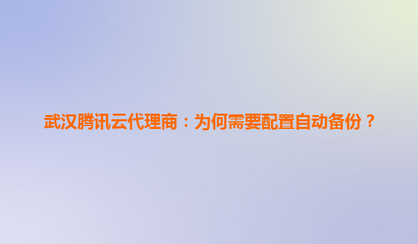 武汉腾讯云代理商:为何企业必须配置自动备份?