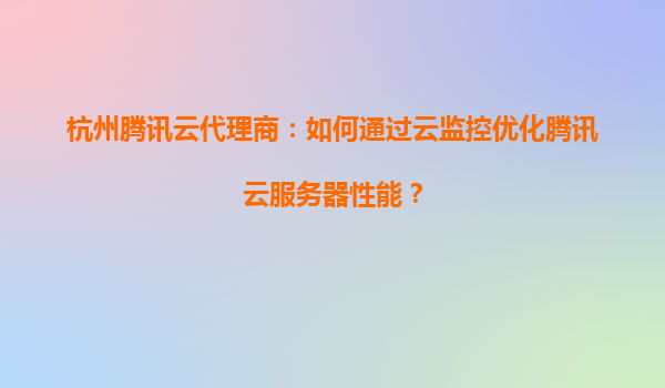 杭州腾讯云代理商:如何通过云监控优化腾讯云服务器性能?