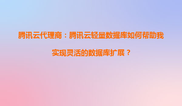 腾讯云轻量数据库:灵活扩展的云端数据管理解决方案