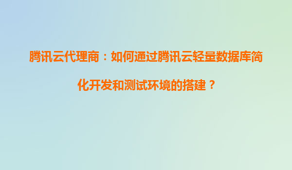 腾讯云代理商指南:轻量数据库如何简化开发测试环境搭建