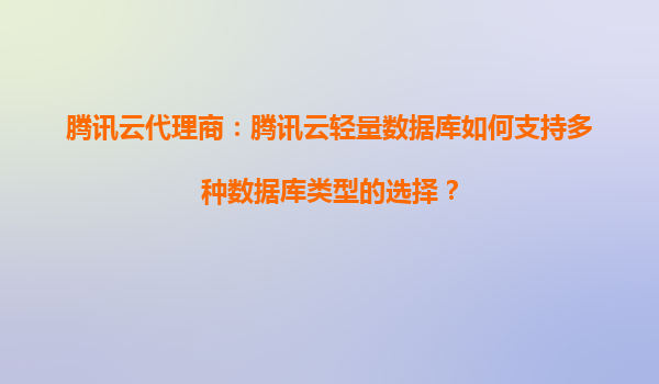 腾讯云代理商:腾讯云轻量数据库如何支持多种数据库类型的选择?