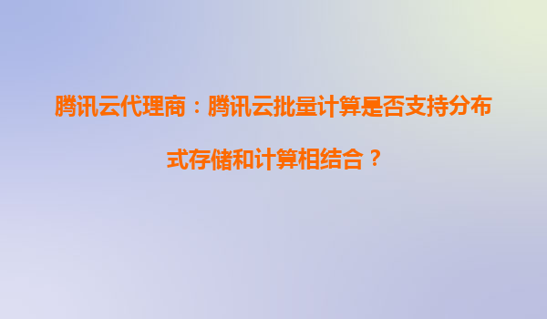 腾讯云代理商解析:腾讯云批量计算如何实现分布式存储与计算的完美结合