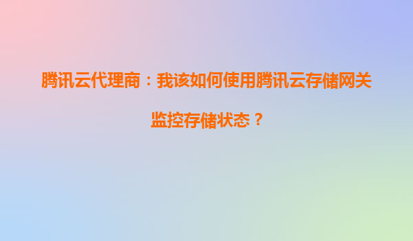 腾讯云代理商指南:如何高效使用腾讯云存储网关监控存储状态