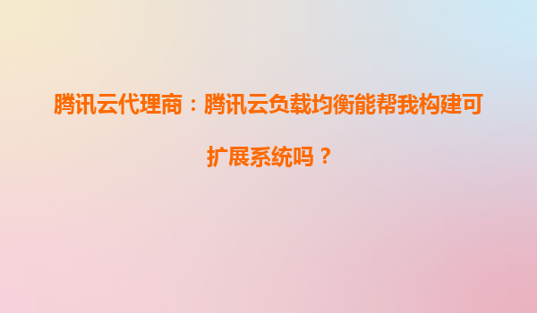 腾讯云代理商:腾讯云负载均衡如何助力构建可扩展系统?