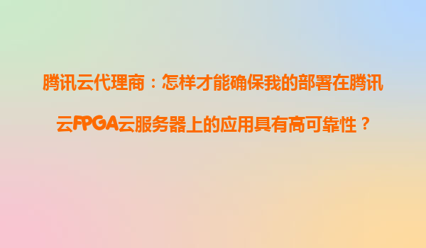 腾讯云代理商指南:确保腾讯云FPGA云服务器应用高可靠性的最佳实践