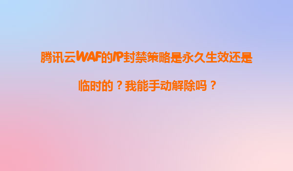 腾讯云Web应用防火墙(WAF)作为企业级安全防护的核心组件,其IP封禁机制是用户关注的重点之一。本文将详细解答关于封禁策略的时效性、手动解除方式,并深入剖析腾讯云WAF的核心优势。