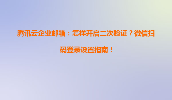 腾讯云企业邮箱:怎样开启二次验证?微信扫码登录设置指南!