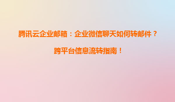 腾讯云企业邮箱 × 企业微信:跨平台信息流转实战指南