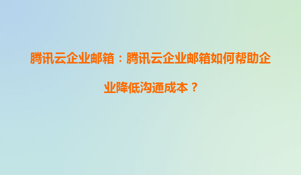 腾讯云企业邮箱:助力企业高效沟通,显著降低运营成本