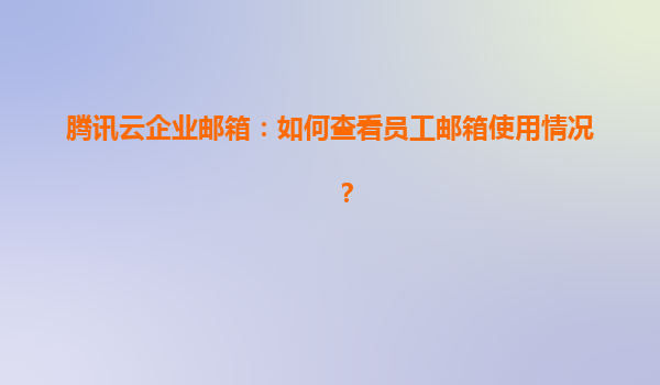 腾讯云企业邮箱:全方位掌握员工邮箱使用情况的管理指南