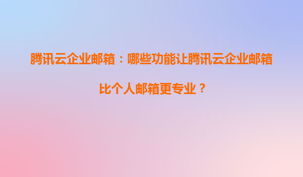 腾讯云企业邮箱通过身份专业化、管理集中化、安全体系化、生态协同化四大维度重构企业通信标准。相比个人邮箱: