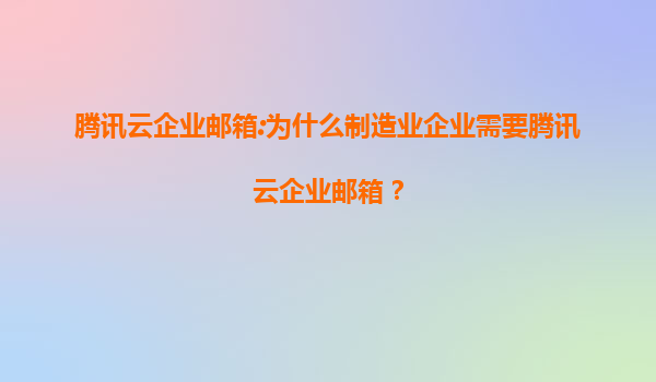 腾讯云企业邮箱:为什么制造业企业需要腾讯云企业邮箱?