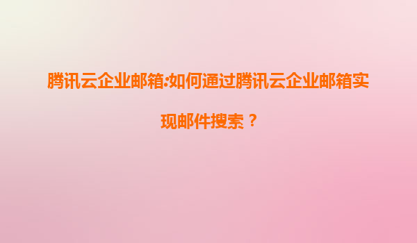 腾讯云企业邮箱:如何通过腾讯云企业邮箱实现邮件搜索?