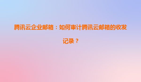 腾讯云企业邮箱:如何审计腾讯云邮箱的收发记录?