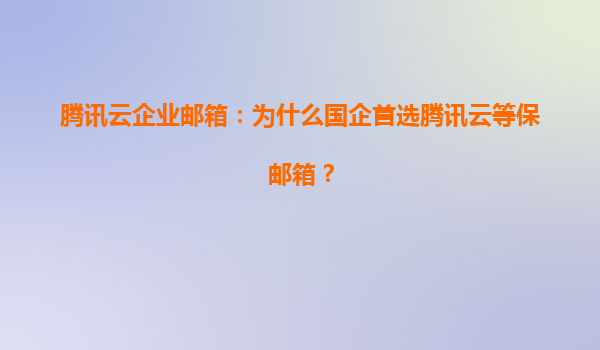 腾讯云企业邮箱:为什么国企首选腾讯云等保邮箱?