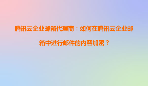 腾讯云企业邮箱代理商指南:如何在腾讯云企业邮箱中实现邮件内容加密?