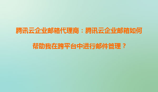 腾讯云企业邮箱代理商:腾讯云企业邮箱如何帮助我在跨平台中进行邮件管理?