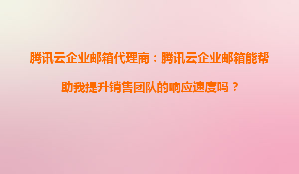 腾讯云企业邮箱代理商:腾讯云企业邮箱如何助力销售团队提升响应速度?