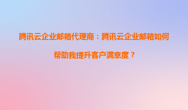 腾讯云企业邮箱代理商:腾讯云企业邮箱如何助力企业提升客户满意度