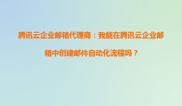 腾讯云企业邮箱代理商:我能在腾讯云企业邮箱中创建邮件自动化流程吗?