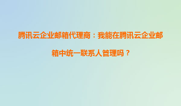 腾讯云企业邮箱代理商:我能在腾讯云企业邮箱中统一联系人管理吗?