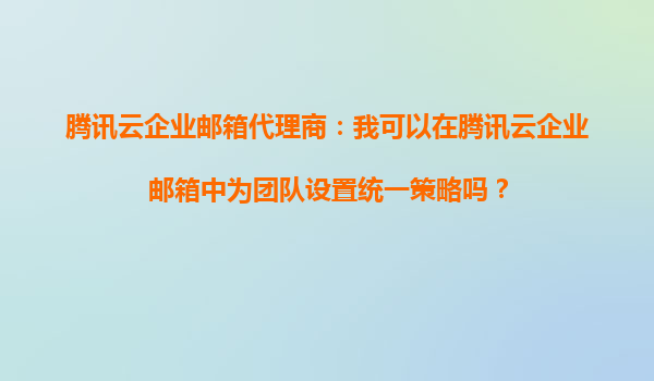 腾讯云企业邮箱代理商:如何为团队设置统一策略?
