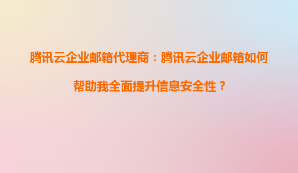 腾讯云企业邮箱代理商:腾讯云企业邮箱如何帮助我全面提升信息安全性?