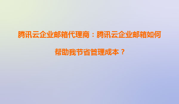 腾讯云企业邮箱如何助力企业高效节省管理成本