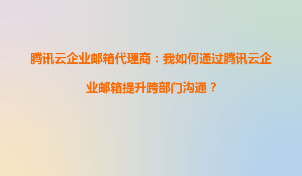 腾讯云企业邮箱代理商:我如何通过腾讯云企业邮箱提升跨部门沟通?