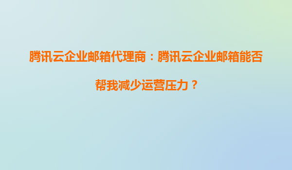 腾讯云企业邮箱代理商:腾讯云企业邮箱能否帮我减少运营压力?