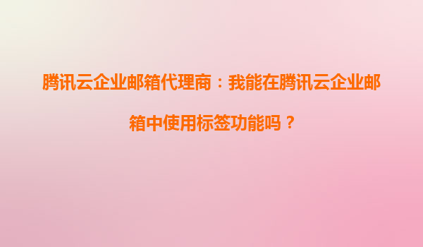 腾讯云企业邮箱代理商:我能在腾讯云企业邮箱中使用标签功能吗?