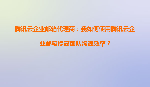 腾讯云企业邮箱代理商:如何利用腾讯云企业邮箱提升团队沟通效率