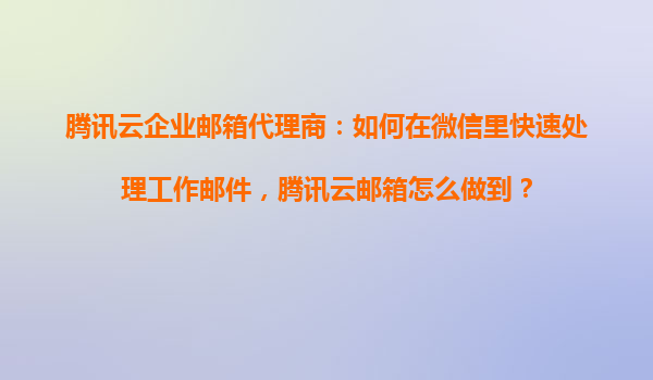 腾讯云企业邮箱代理商:如何在微信里快速处理工作邮件,腾讯云邮箱怎么做到?