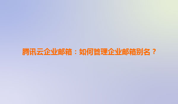 腾讯云企业邮箱:高效管理邮箱别名,助力企业便捷沟通