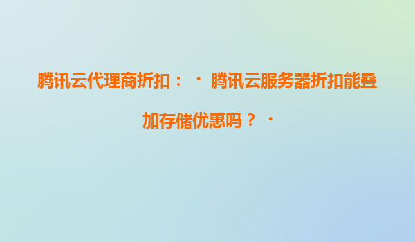 腾讯云服务器折扣与存储优惠叠加规则解析:如何通过代理商实现更高性价比?