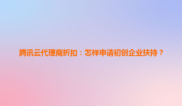 腾讯云赋能初创企业:代理商折扣与扶持计划全解析