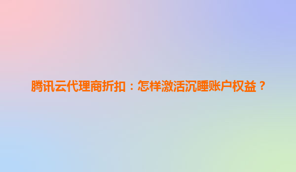 唤醒沉睡账户 解锁腾讯云独家代理商折扣