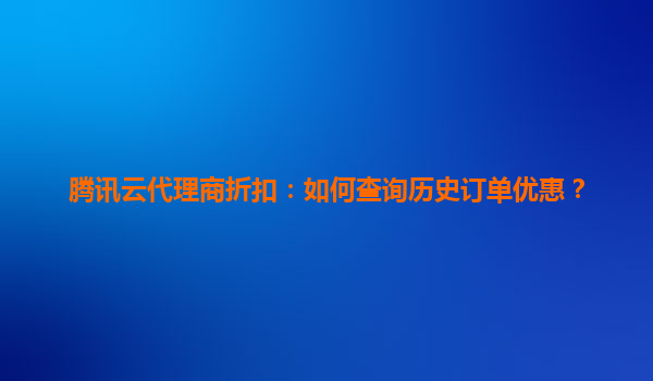 腾讯云代理商折扣:如何高效查询历史订单优惠?