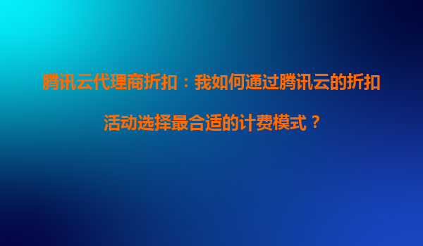 腾讯云代理商折扣:如何通过腾讯云的折扣活动选择最合适的计费模式?