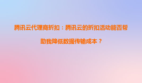 腾讯云代理商折扣:腾讯云的折扣活动能否帮助我降低数据传输成本?