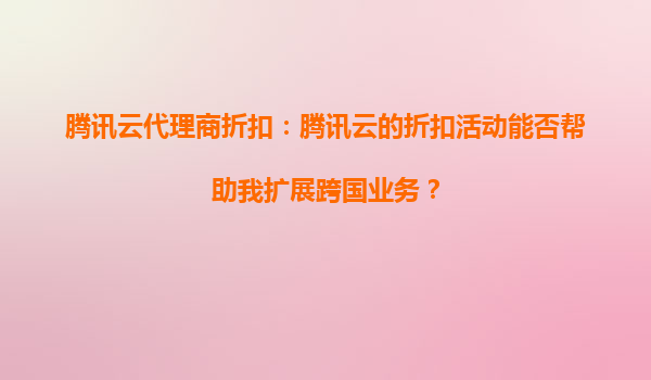 对于希望扩展国际业务的企业而言,借助腾讯云代理商折扣和强大稳定的云服务平台,能够获得显著的竞争优势。 从成本节约到技术支持,从基础设施到合规性保障,腾讯云为企业出海提供全方位的赋能。 选择腾讯云全球解决方案,让国际化扩张之路更加平坦高效。
