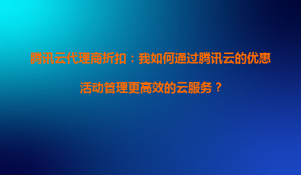 腾讯云代理商折扣:如何通过腾讯云的优惠活动管理更高效的云服务?