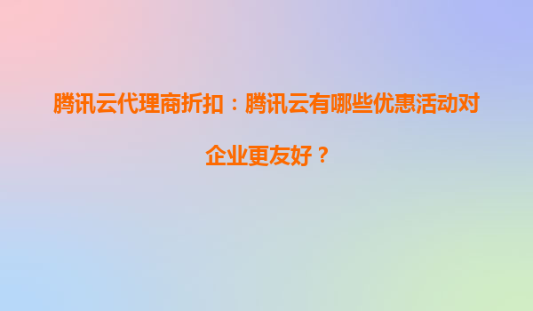 腾讯云代理商折扣:腾讯云有哪些优惠活动对企业更友好?