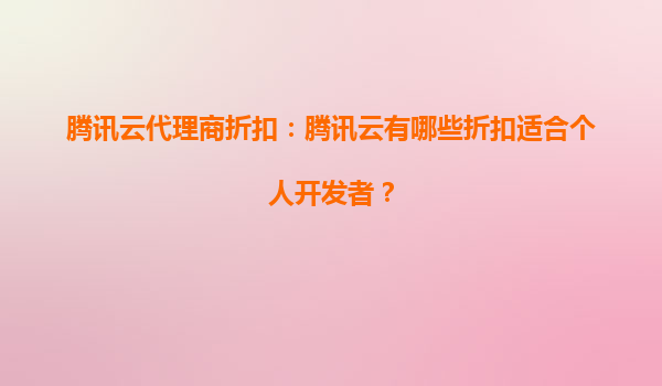 腾讯云代理商折扣:腾讯云有哪些折扣适合个人开发者?