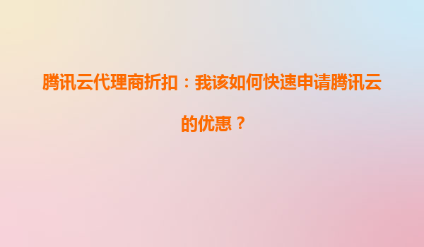 腾讯云代理商折扣:如何快速申请腾讯云优惠?