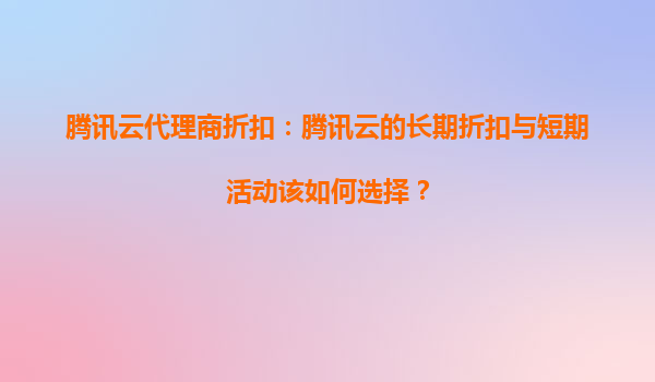 腾讯云代理商折扣:腾讯云的长期折扣与短期活动该如何选择?